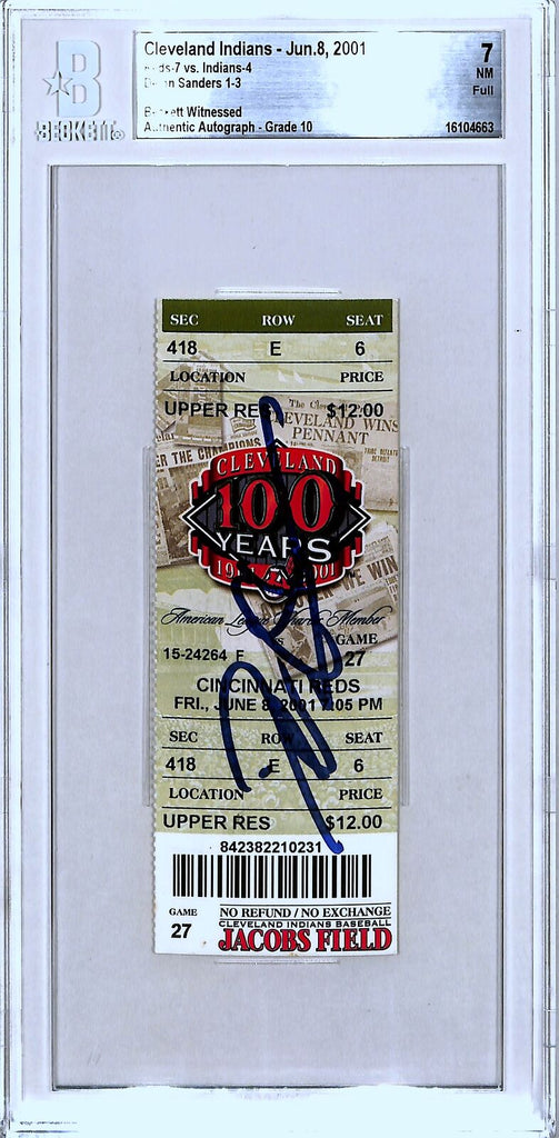 Deion Sanders Signed Cincinnati Reds Ticket Last MLB Hit BAS Slab 37144 The number in the listing title is just an inventory sku for our records and is not the authentication number. The item pictured is a the exact item you will receive, please see photos for condition. This is a Cincinnati Reds Slabbed Ticket Stub 06/08/01 that was personally autographed by Deion Sanders. Includes a certificate of authenticity from Beckett Authentication Services (BAS) and Denver Autographs.
