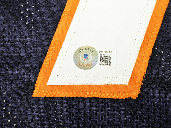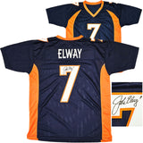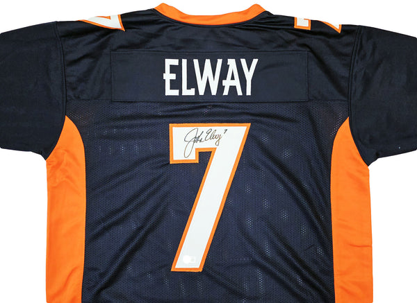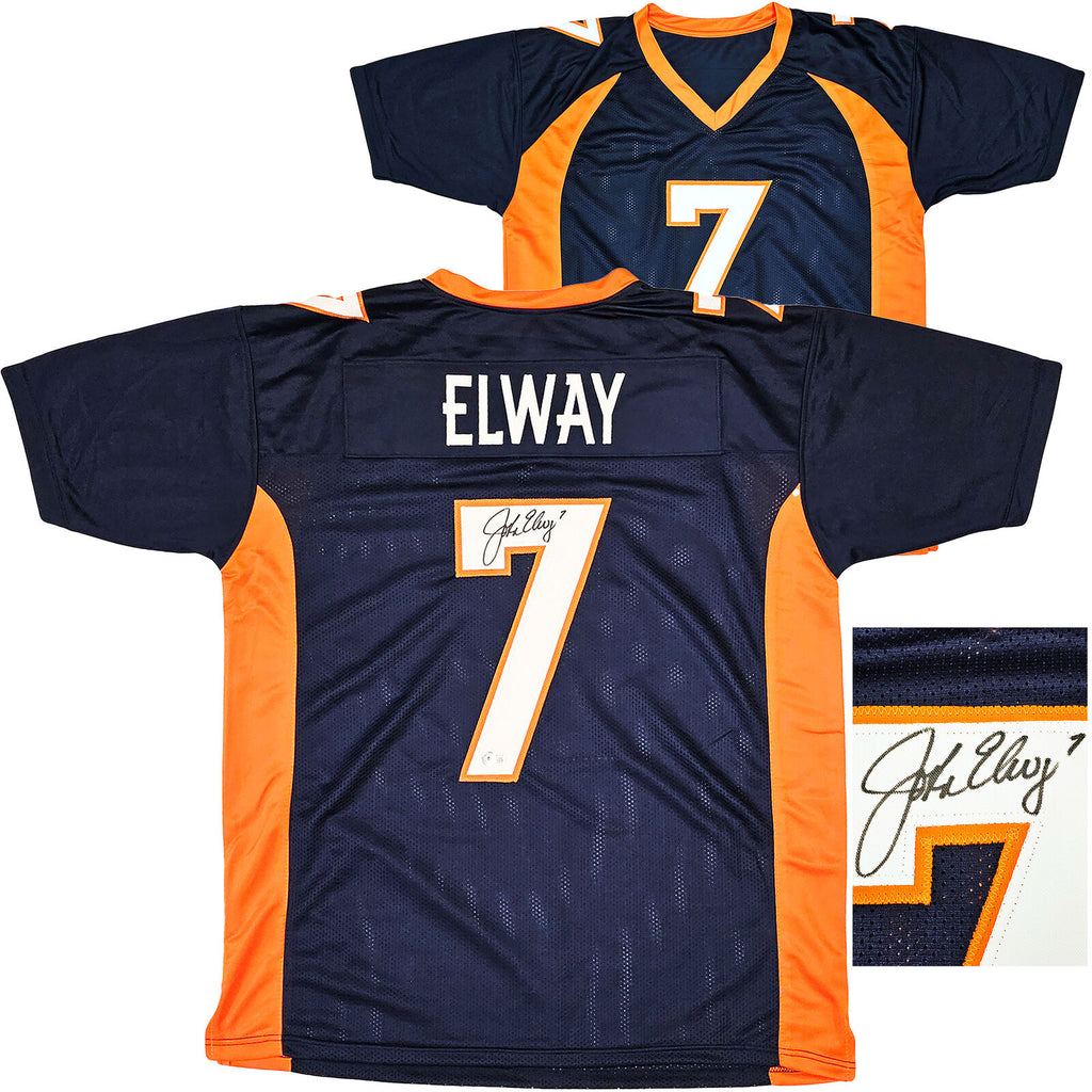 This is a Blue Jersey that has been hand signed by John Elway. This is a custom jersey with no name brand. The approximate size is XL. It has nice sewn in name and numbers. This item has been witnessed and certified authentic by Beckett Authentication (BAS) and comes with their tamper-proof witness sticker.