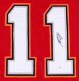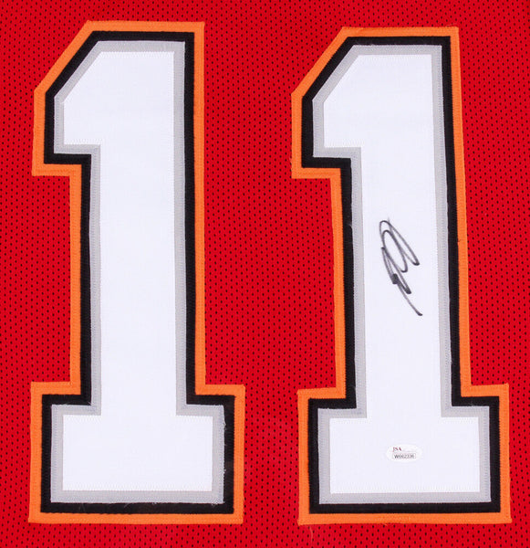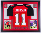 Custom frame measures approximately 35" x 43" in size and features a jersey which has been hand-signed in black felt tip pen by DeSean Jackson. The lot / autograph(s) includes an official James Spence Authentication (JSA) hologram and matching COA for authenticity purposes. The signing of this item was witnessed by JSA.Authentication: JSA COA