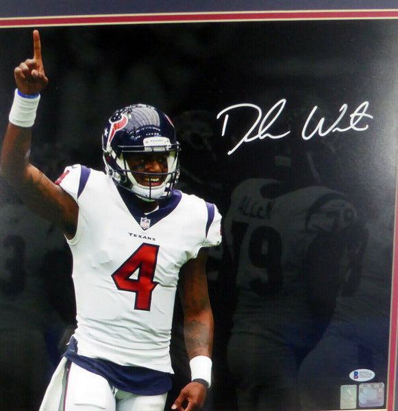 This is a framed 16x20 Photo, approximately 24x28 with the frame, that has been hand signed by Deshaun Watson. It has been certified authentic by Beckett Authentication (BAS) and comes with their sticker and matching certificate of authenticity.