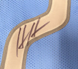 This is a Blue Jersey that has been hand signed by Hendon Hooker. This is a custom jersey with no name brand. The approximate size is XL. It has nice sewn in name and numbers. This item has been certified authentic by Beckett Authentication (BAS) and comes with their tamper-proof QR Code sticker that can be verified on the Beckett-authentication.com.