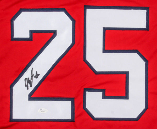 Custom on-field style jersey. Everything sewn on, size XL. Hand-signed in black felt tip pen by Devante Smith-Pelly. The lot / autograph(s) includes an official James Spence Authentication (JSA) hologram and matching COA for authenticity purposes.Authentication: JSA COA