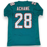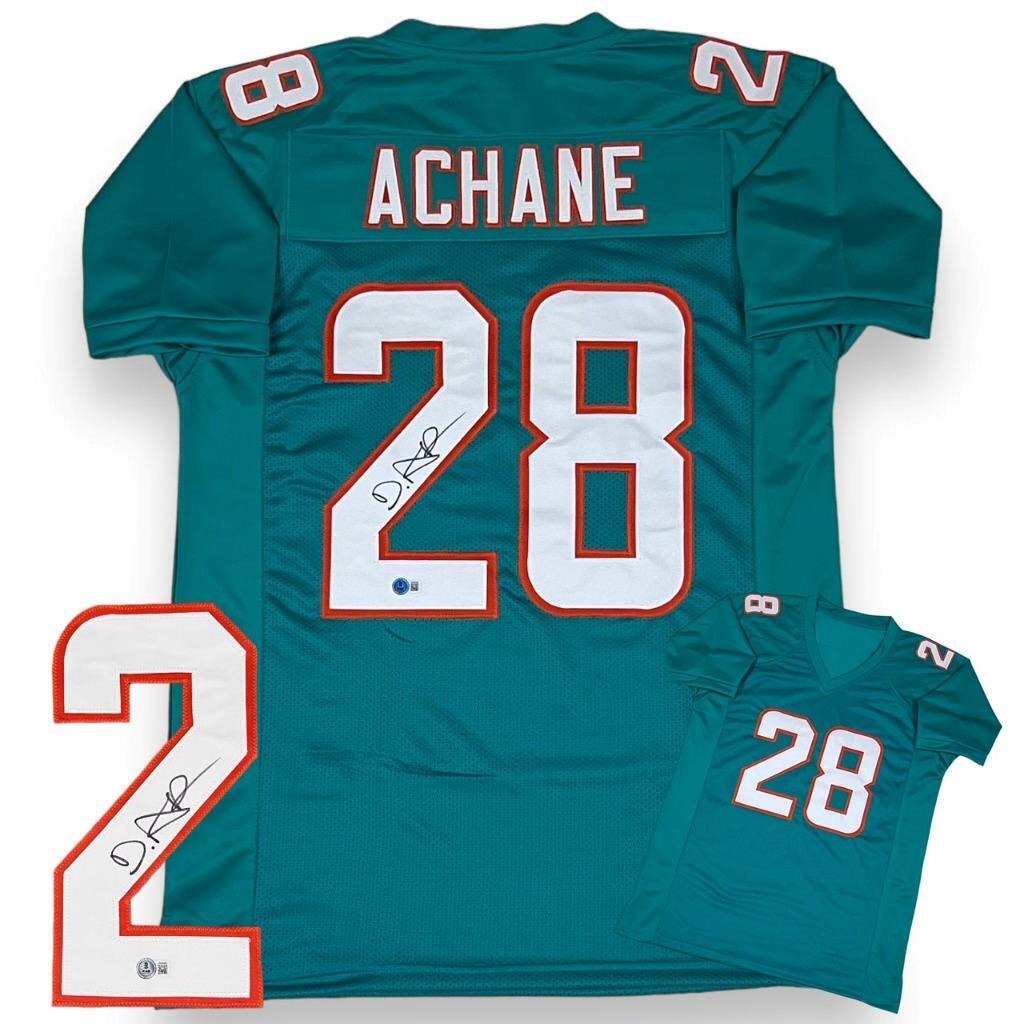 This signed item is brand new without tags or logos. This jersey is custom sewn in a size Large / XL. All the letters and numbers are sewn on! This item will make a great gift or a great addition to any collection at an AFFORDABLE PRICE! ATHLETE: Devon Achane ITEM: Custom Sewn Jersey AUTHENTICATION: This item comes with a Beckett serial #'ed hologram affixed to the item. To ensure authenticity, the hologram can be reviewed online. This process helps to ensure that the product purchased is authentic and eliminates any possibility of duplication or fraud. NOTE: All of our autographed jerseys are custom jerseys, unless otherwise noted. Our custom jerseys are NON-BRANDED, have NO logos, NO tags, NO patches, NO emblems. All letters and numbers are SEWN-ON. The non-branded jerseys are made specifically for the player(s) to sign, for collectible purposes.