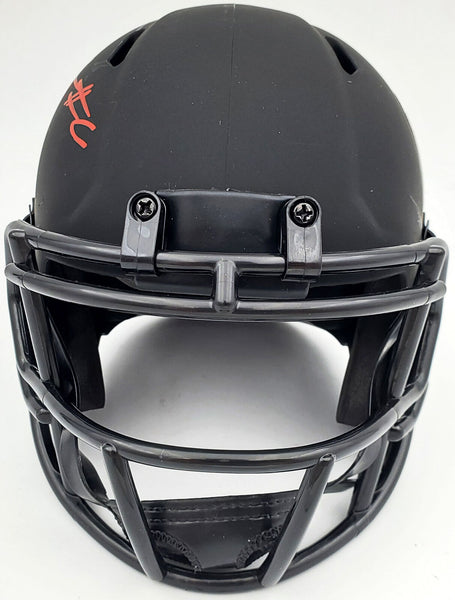 This is an Alabama Crimson Tide Eclipse Black Speed Mini Helmet that has been hand signed by Devonta Smith. The Eclipse Black helmets are very delicate and often have some marks or scratches on them. This item has been certified authentic by Beckett Authentication (BAS) and comes with their tamper-proof sticker and matching certificate of authenticity.