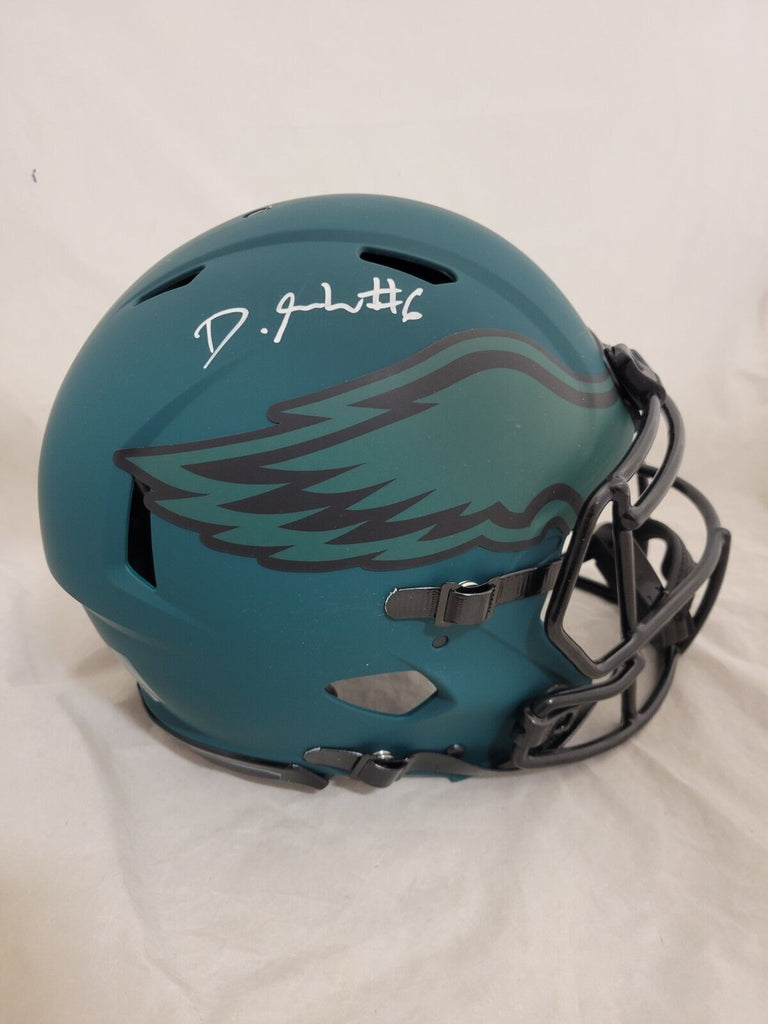 DEVONTA SMITH AUTOGRAPHED PHILADELPHIA EAGLES FULL SIZE RAVE SPEED AUTHENTIC HELMETFANATICS QR HOLOGRAMTHIS MEANS THE HELMET WAS SIGNED WITH A FANATICS REPRESENTATIVE PRESENT SO YOU CAN BE 100% CERTAIN ITS THE REAL THING.