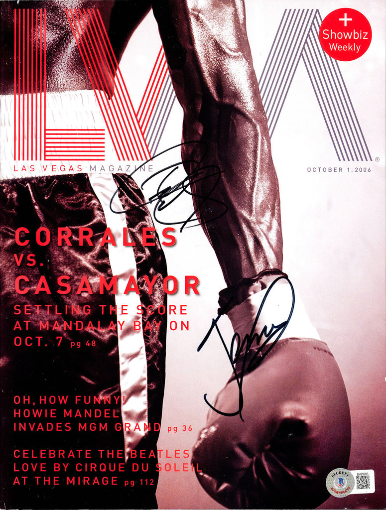 This is a Las Vegas magazine that has been hand signed by Diego Corrales & Joel Casamayor. This item has been certified authentic by Beckett Authentication (BAS) and comes with their tamper-proof hologram.