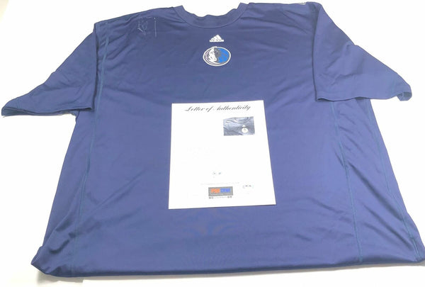 Stitched shirt autographed by Dirk Nowitzki of the Dallas Mavericks. The autograph of Dirk on this shirt was authenticated by a team of experts at PSA/DNA so you can rest assured you are purchasing the real deal.