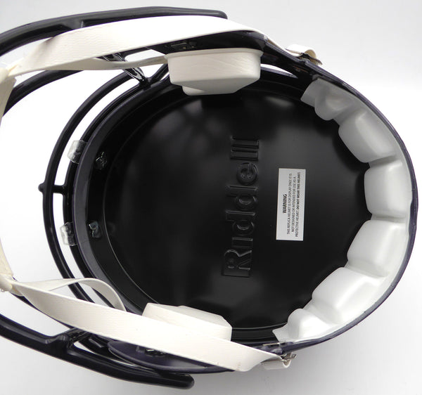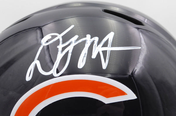This is a Speed Replica Blue Full Size Replica Helmet that has been hand signed by DJ Moore. There is an imperfection in the signature as shown. This item has been certified authentic by Beckett Authentication (BAS) and comes with their tamper-proof QR Code sticker that can be verified on the Beckett-authentication.com.