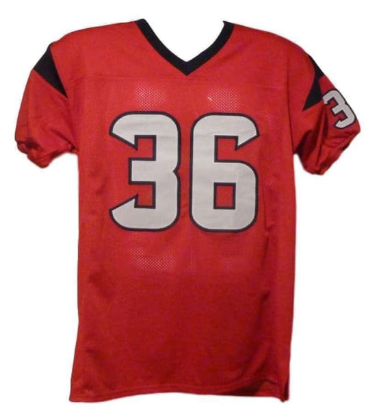 DJ Swearinger Unsigned Houston Texans XL Red Jersey 40021 This is a custom size red XL jersey with sewn on name and numbers of DJ Swearinger.