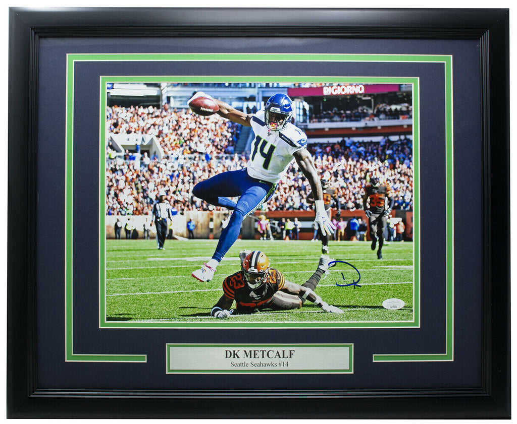 Featured is a DK Metcalf signed framed Seattle Seahawks 11x14 photo. This photo was hand signed by DK Metcalf and authenticated by JSA authentication services. Included with the photo is a JSA hologram and certificate of authentication. The frame measures 16x20 in total size and is ready is for display. SPECIFICATIONS Autographed By: DK Metcalf Team: Seattle Seahawks Sport: Football-NFL Authentication: James Spence Authentication (JSA)