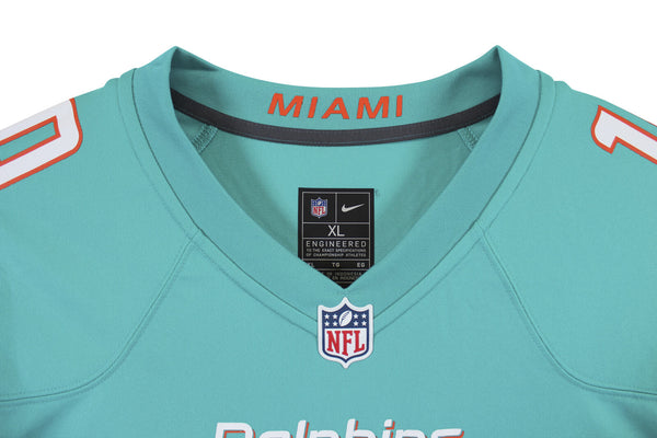 This Autographed Teal Nike Game Jersey has been Personally Signed by Tyreek Hill of the Miami Dolphins. This item is 100% Authentic to include a hologram by Beckett Authentication Services. This item will come with an affixed Beckett Authentication Services (BAS) authentication sticker, which includes a scannable QR code to verify authenticity. Please note that Beckett no longer provides serial-numbered COA cards, and the attached BAS sticker will serve as the complete authentication for this item. This is a BAS Witnessed Protection Program item which means a Beckett Authentication Service representative was present when this item was being signed. The authenticity can be verified on Beckett Authentication Services website. This is a X-Large sized Jersey.