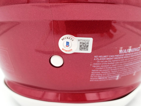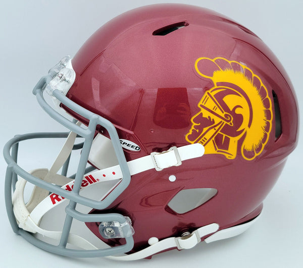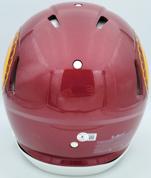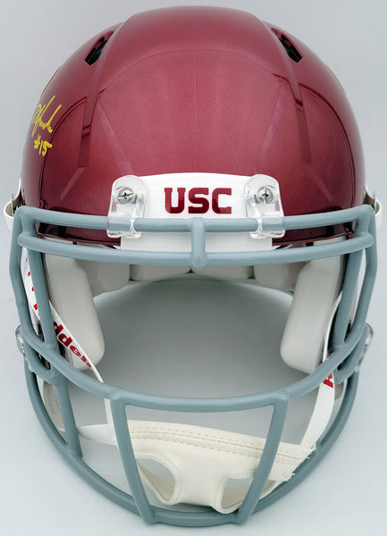 This is an USC Trojans Maroon Full Size Authentic Speed Helmet that has been hand signed by Drake London. This item has been certified authentic by Beckett Authentication (BAS) and comes with their tamper-proof QR Code sticker that can be verified on the Beckett-authentication.com.