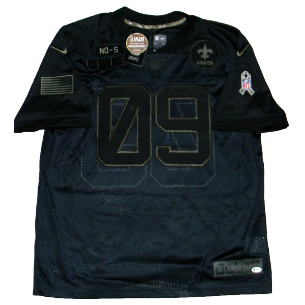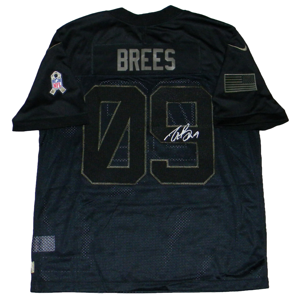 Drew Brees, All-Pro quarterback for the New Orleans Saints, has hand signed this Salute to Service Nike Limited jersey. Jersey is new with tags attached and all letters/numbers are sewn-on. This item comes with a certificate of authenticity (COA) from Beckett Authentication Services and was signed in the presence of one of their representatives. You will receive a serial-numbered COA along with a matching serial-numbered sticker on the jersey. The authenticity can be verified online by entering the serial number.Item pictured may not be the exact item you will receive. It will be similar quality, and we guarantee your satisfaction.