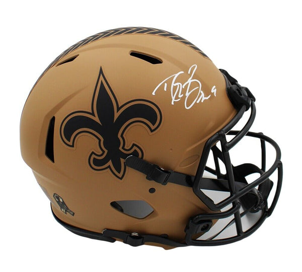 A New Orleans Saints Speed Authentic Salute to Service 2 NFL Helmet hand signed by Drew Brees. The item and signature are in excellent condition. Drew is an 11x Pro Bowler, Super Bowl Champion, Super Bowl MVP, and 2x NFL Offensive Player of the Year. AUTHENTICATION: The item is tagged with a SmarTag powered by Prova Technology which gives you digital access to the items authentication records including a prof picture from the sign.