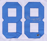 Custom On-field style jersey. Everything is sewn on, size XL. Hand-signed in silver paint-pen by Drew Pearson. The lot / autograph(s) includes an official The Player's Locker (TPL) hologram for authenticity purposes.Authentication: TPL Hologram