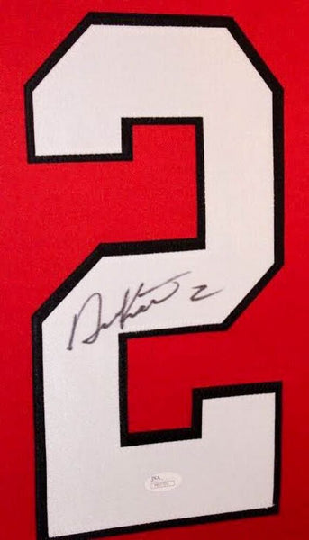 Custom frame measures approximately 35" x 43" in size and features a jersey which has been hand-signed in black felt tip pen by Duncan Keith. The autograph includes an official James Spence Authentication (JSA) hologram and matching COA for authenticity purposes.Authentication: JSA COA