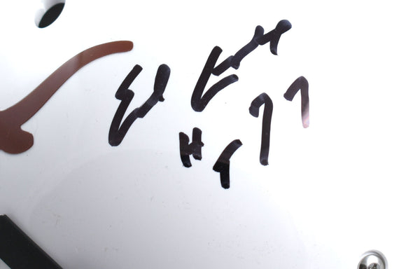 This is a Earl Campbell of the Texas Longhorns Autographed Schutt football full size Replica helmet. Inscribed HT 77. This item has a Beckett Witnessed Authentication, which comes with a numbered hologram and a QR code for verification. You can view this item on the Beckett Authentication website and it shows when and where the item was signed. It was signed either at a public autograph appearance or a private signing. This is a stock photo of the item. Although you may not receive this exact item, the item you receive is virtually identical, brand new, and in great shape. *Autograph location may vary* This is a Earl Campbell of the Texas Longhorns Autographed Schutt football full size Replica helmet. This item has a Beckett Witnessed Authentication, which comes with a numbered hologram and a QR code for verification. You can view this item on the Beckett Authentication website and it shows when and where the item was signed. It was signed either at a public autograph appearance or a private signing. This is a stock photo of the item. Although you may not receive this exact item, the item you receive is virtually identical, brand new, and in great shape. *Autograph location may vary*
