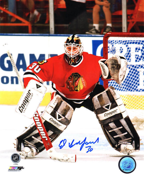Ed Belfour signed Chicago Blackhawks hockey goalie action 8x10 photo. Item comes with a Schwartz Sports Memorabilia tamper-proof numbered hologram and Certificate of Authenticity which can be verified online.