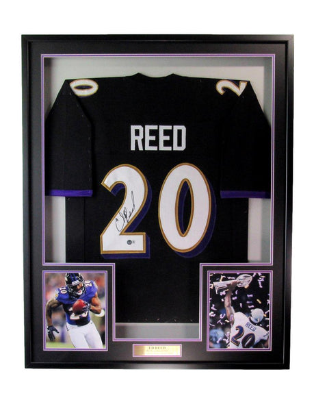 Ed Reed Signed/Autographed Black Baltimore Ravens Football Jersey Framed. The outer frame size is 33 inches x 42 inches. This jersey is authenticated by BAS/Beckett and includes their Tamper-proof Hologram Sticker.