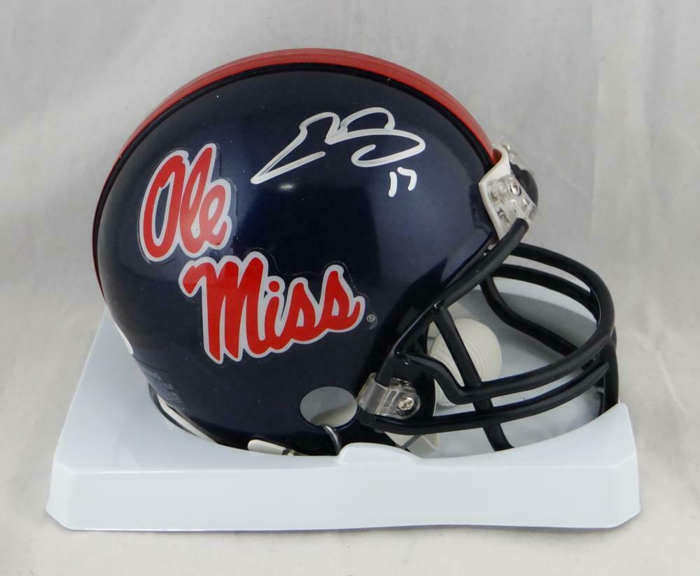 Evan Engram Autographed Ole Miss Navy Riddell Mini Helmet- JSA Auth *Silver This is a Hand Autograph of Evan Engram of the Ole Miss Rebels on a Riddell Football Mini Helmet. This item has a James Spence Authentication, which comes with a JSA #'ed Sticker and a matching JSA Certificate of Authenticity. You can view this item on the SpenceLOA website and it shows when and where the item was signed. It was signed either at a public autograph appearance or a Private Signing. This is a stock photo of the item. Although you may not receive this exact item, the item you receive is virtually identical and brand new in great shape.