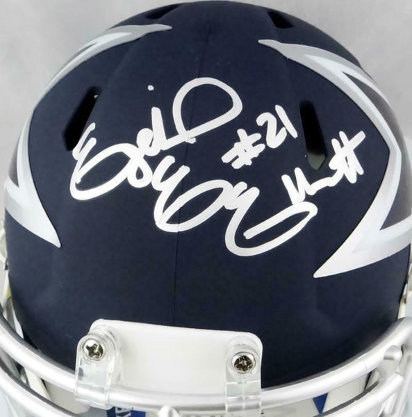 Ezekiel Elliott Autographed Dallas Cowboys AMP Speed Mini Helmet- Beckett Auth *Silver This is a hand autograph of Ezekiel Elliott of the Dallas Cowboys on a Riddell AMP Speed Mini Football Helmet. This item has a Beckett Authentication, which comes with a numbered and a matching Beckett Certificate of Authenticity. You can view this item on the Beckett Authentication website. It was signed either at a public autograph appearance or a private signing. This is a stock photo of the item. Although you may not receive this exact item, the item you receive is virtually identical and brand new in great shape.