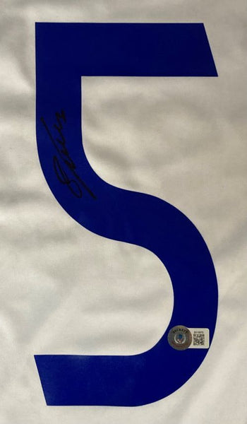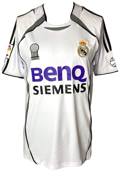 Featured is a Fabio Cannavaro signed Real Madrid soccer jersey. This jersey was hand signed by Cannavaro and comes with the Beckett hologram and certificate of authenticity. This jersey is size Large. This jersey would make a great addition to any sports memorabilia collection! SPECIFICATIONS Autographed By: Fabio Cannavaro Team: Real Madrid Sport: Soccer Authentication: Beckett Grading Services