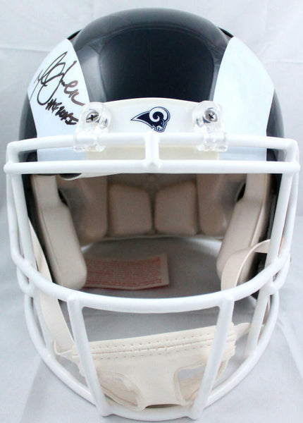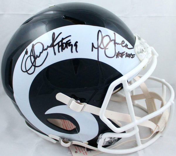 Faulk/Dickerson Signed Rams Speed Authentic FS Helmet w/ HOF- BA W Holo *Black This is a Marshall Faulk and Eric Dickerson of the Rams hand autographed Riddell Football full size Speed Authentic helmet inscribed with "HOF". This item has a Beckett Witnessed Authentication, which comes with a numbered sticker and matching Certificate of Authenticity. You can view this item on the Beckett Authentication website, it shows when and where the item was signed. It was signed either at a public autograph appearance or a private signing. This is a stock photo of the item. Although you may not receive this exact item, the item you receive is virtually identical, brand new, and in great shape.
