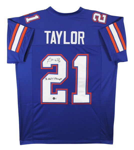 Florida Fred Taylor "96 National Champs" Signed Blue Pro Style Jersey BAS Wit