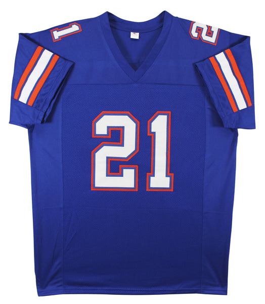 This Autographed Blue Pro Style Jersey with the inscription of "96 National Champs" has been Personally Signed by Fred Taylor of the Florida Gators. This item is 100% Authentic to include a hologram by Beckett Authentication Services. This item will come with an affixed Beckett Authentication Services (BAS) authentication sticker, which includes a scannable QR code to verify authenticity. Please note that Beckett no longer provides serial-numbered COA cards, and the attached BAS sticker will serve as the complete authentication for this item. This is a BAS Witnessed Protection Program item which means a Beckett Authentication Service representative was present when this item was being signed. We have multiples of this same item. While the photographs are representative of this item, the size, placement and strength of the signature may vary. Each item is hand signed, therefore, each autograph is unique. This is a X-Large sized, non-branded, custom-stitched Jersey.