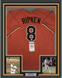 Framed Autographed/Signed Cal Ripken Jr. 33x42 Baltimore Orange Jersey JSA COA