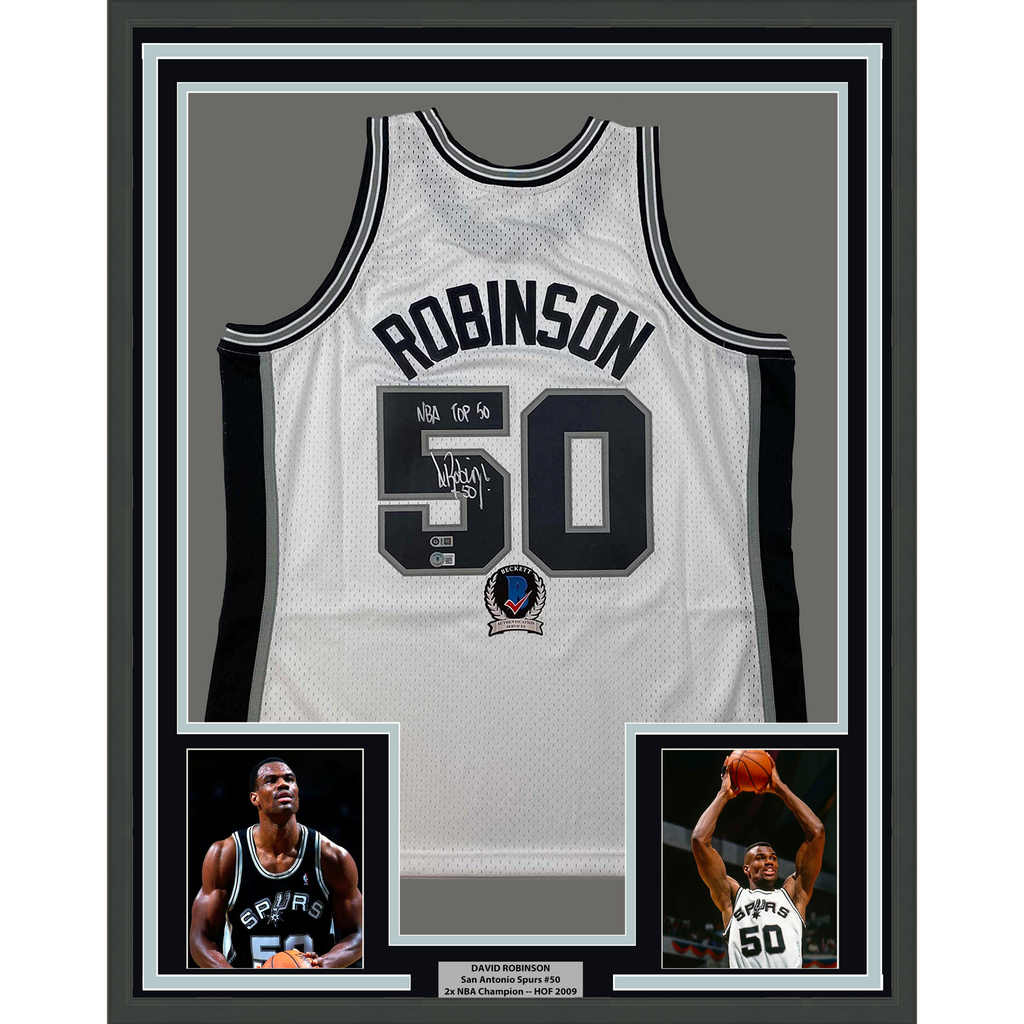 Framed Autographed/Signed David Robinson 33x42 White Authentic Jersey BAS COA