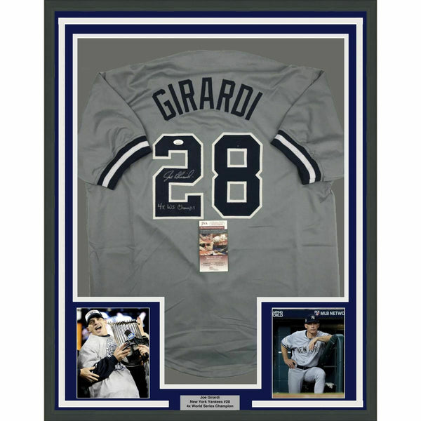 FRAMED Autographed/Signed JOE GIRARDI 33x42 New York Grey Jersey JSA COA Auto The item is professionally framed & matted with two 8x10 photos, measures 33"x42" and is ready to be hung in your man cave! NOTE: COA card will be mounted on the back of the frame, not inside it on top of the jersey as seen in the picture. Please allow up to 5 business days for the item to be framed, packaged safely, and picked up by USPS. Photo and matting requests can be made.