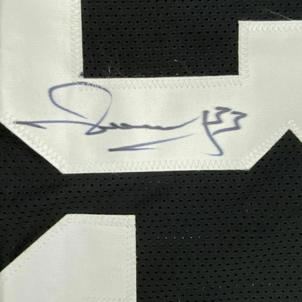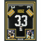 FRAMED Autographed/Signed MERRIL HOGE 33x42 Pittsburgh Black Jersey JSA COA Auto The item is professionally framed & matted with two 8x10 photos, measures 33"x42" and is ready to be hung in your man cave! NOTE: COA card will be mounted on the back of the frame, not inside it on top of the jersey as seen in the picture.