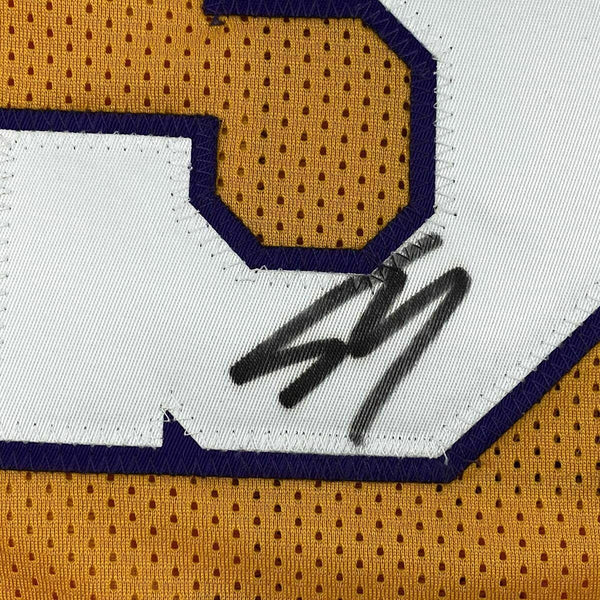 FRAMED Autographed/Signed SHAQUILLE SHAQ O'NEAL 33x42 LA Yellow Jersey BAS COA The item is professionally framed & matted with two 8x10 photos, measures 33"x42" and is ready to be hung in your man cave! NOTE: COA card will be mounted on the back of the frame, not inside it on top of the jersey as seen in the picture.