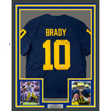 Framed Autographed/Signed Tom Brady 35x39 Michigan Wolverines Blue Authentic Lim The item is professionally framed and matted with two 5x7 photos, measures 35 inches by 39 inches and is ready to be hung in your man cave! Photo and matting requests can be made.