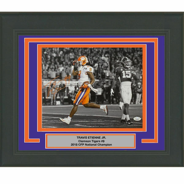 FRAMED Autographed/Signed TRAVIS ETIENNE JR Clemson Tigers 11x14 Photo JSA COA The item is professionally framed & matted and is ready to be hung in your man cave! NOTE: COA card, if applicable, will be mounted on the back of the frame. Please allow up to 5 business days for the item to be framed, packaged safely, and picked up by UPS. Nameplate and matting requests can be made.