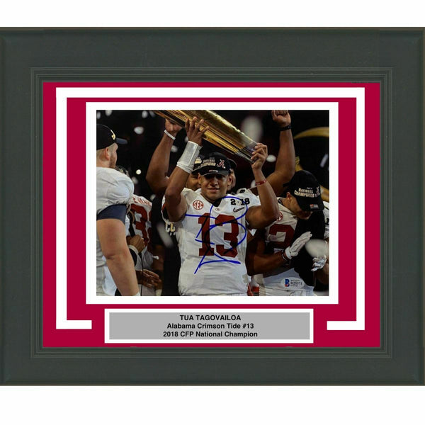 FRAMED Autographed/Signed TUA TAGOVAILOA Alabama 8x10 Photo Beckett BAS COA #7 The item is professionally framed & matted and is ready to be hung in your man cave! NOTE: COA card, if applicable, will be mounted on the back of the frame. Please allow up to 5 business days for the item to be framed, packaged safely, and picked up by UPS. Nameplate and matting requests can be made.