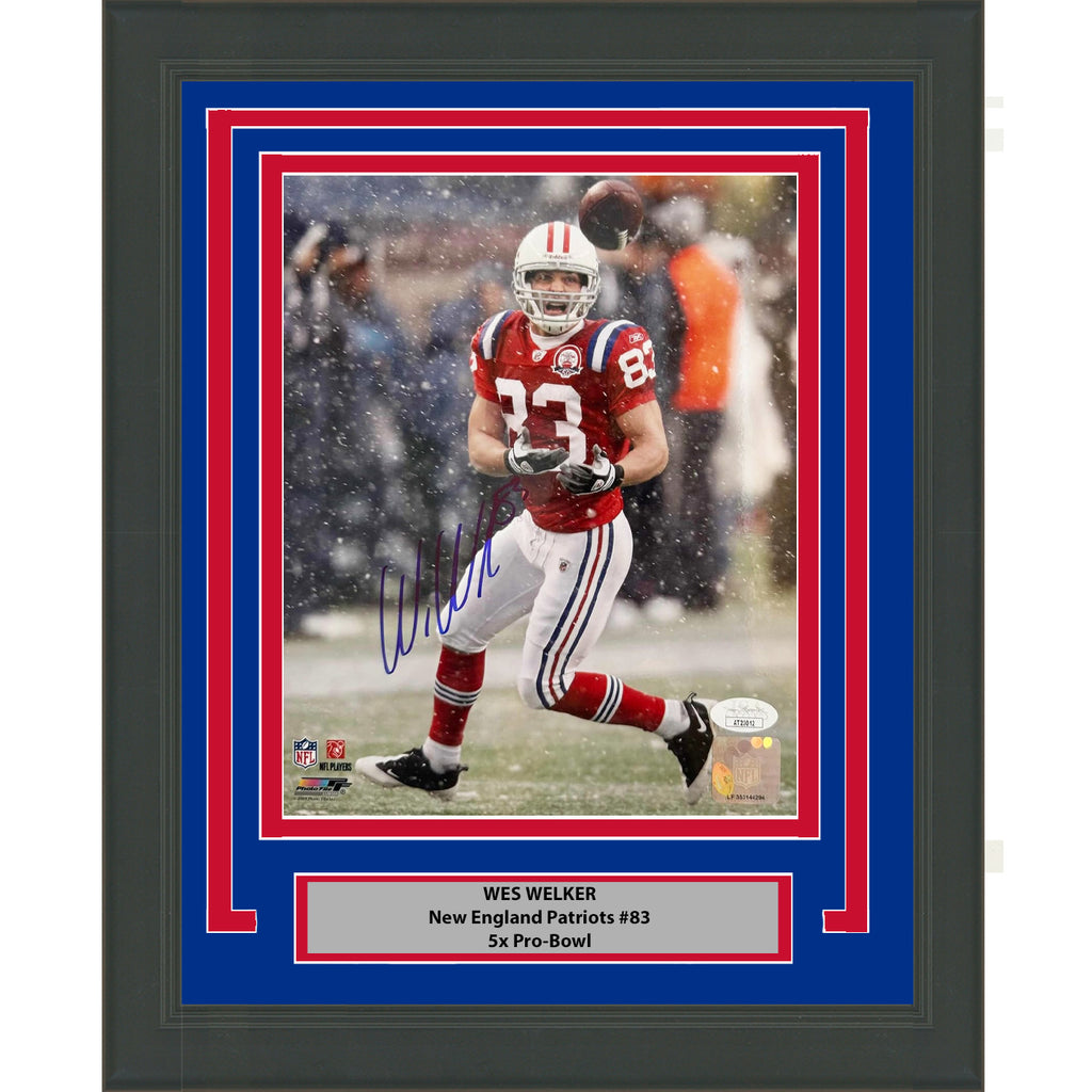 Framed Autographed/Signed Wes Welker New England Patriots 8x10 Photo JSA COA #2 The item is professionally framed & matted and is ready to be hung in your man cave! Nameplate and matting requests can be made.