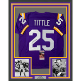 Framed Autographed/Signed YA Y.A. Tittle 33x42 LSU Purple College Jersey JSA COA The item is professionally framed and matted with two 5x7 photos, measures 35 inches by 39 inches and is ready to be hung in your man cave! Photo and matting requests can be made.