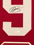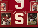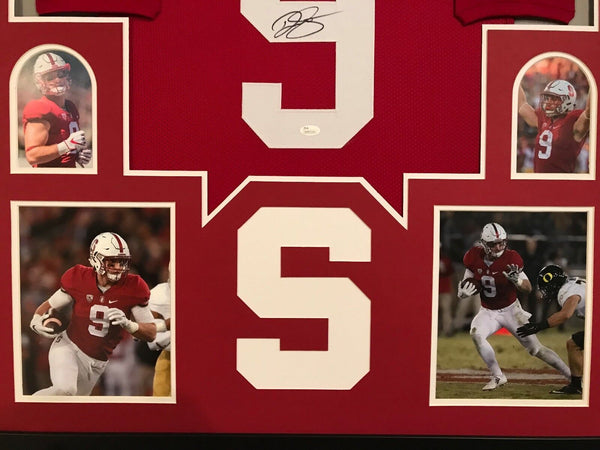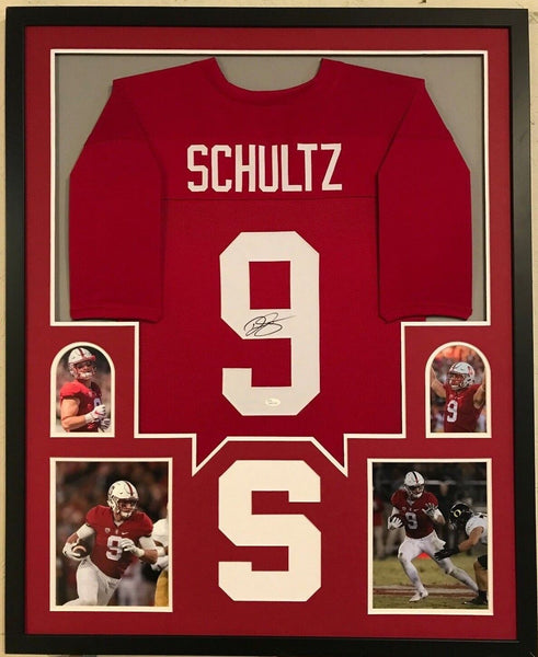 Custom Framed Dalton Schultz hand signed Stanford Cardinals custom jersey. JSA Hologram and COA(#WPP51190) The authentication is from JSA. This signature is authenticated by a representative of JSA! 100% AUTHENTIC!!! The jersey has fully stitched numbers on the front and back. It is a great item and a must for all great sports fans! This item is professionally framed, it measures 32"x40" inside , 42"x34" outside , using UV protective Acrylic glass for safe keeping and safe transport, team color matting, black moulding and hanging hooks on the back. All additional items in frame seen in pictures included. 100% ready to hang in your fan cave.