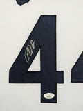 Custom Framed Roy Oswalt hand signed Houston Astros style custom jersey.JSA Hologram and COAThe authentication is from JSA. This signature is authenticated by a representative of JSA! 100% AUTHENTIC!!! The jersey has fully stitched numbers on the front and back. It is a great item and a must for all great sports fans!This item is professionally framed, it measures 32"x40" inside , 42"x34" outside , using UV protective Acrylic glass for safe keeping and safe transport, team SUEDE color matting, black moulding and hanging hooks on the back. All additional items in frame seen in pictures included. 100% ready to hang in your fan cave.