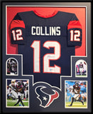 Custom Framed Nico Collins signed Houston Texans style custom jerseyBeckett HologramThe authentication is from Beckett. This signature is WITNESSED by a representative of Beckett! 100% AUTHENTIC!!! The jersey has fully stitched numbers on the front and back. It is a great item and a must for all great sports fans!This item is professionally framed, it measures 32"x40" inside , 42"x34" outside , using UV protective Acrylic glass for safe keeping and safe transport, team color matting, black moulding and hanging hooks on the back. All additional items in frame seen in pictures included. 100% ready to hang in your fan cave.