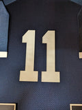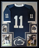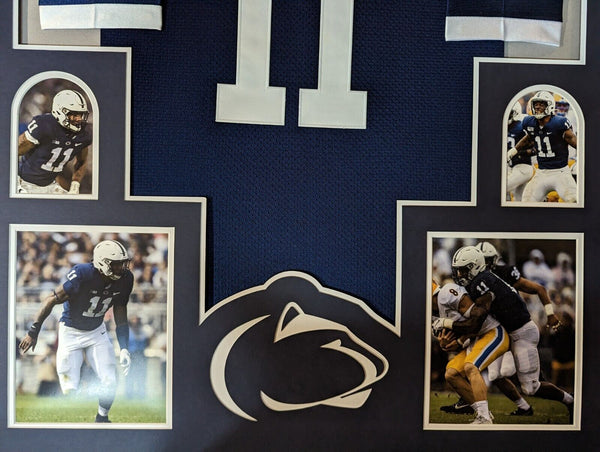 Custom Framed Micah Parsons Penn State Nittany Lions style custom jersey display The jersey has fully stitched numbers on the front and back. It is a great item and a must for all great sports fans! This item is professionally framed, it measures 32"x40" inside , 42"x34" outside , using UV protective Acrylic glass for safe keeping and safe transport, team color matting, black moulding and hanging hooks on the back. All additional items in frame seen in pictures included. 100% ready to hang in your fan cave.