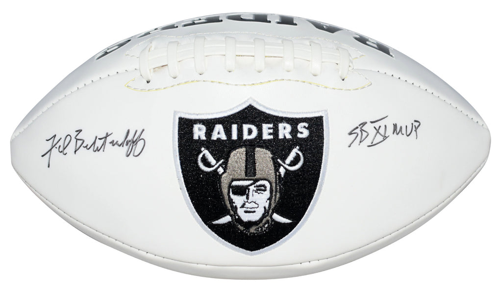 Fred Biletnikoff, former Hall of Fame wide receiver for the Oakland Raiders, has hand signed this Raiders white panel logo football at a private signing. He included the inscription "SB XI MVP" with his signature. This item comes with a certificate of authenticity (COA) from JSA - James Spence Authentication and was signed in the presence of one of their representatives. You will receive a serial-numbered COA along with a matching serial-numbered sticker on the ball. The authenticity can be verified online by entering the serial number.Item pictured may not be the exact item you will receive. It will be similar quality, and we guarantee your satisfaction.