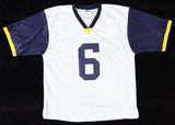 Custom on-field style jersey. Everything sewn on, size XL. Hand-signed by Garrett Greene (West Virginia Mountaineers).The autograph(s) includes an official James Spence Authentication (JSA) "Signature Debut" hologram and COA. "Signature Debut" is the autographed memorabilia equivalent to a rookie card. The JSA definition of a "Signature Debut" is as follows: "Any item that is autographed and received by JSA prior to the last game of the signer's official rookie season.Authentication: JSA COA