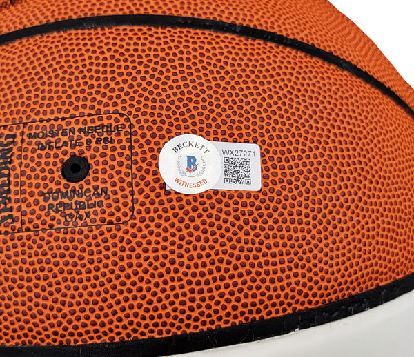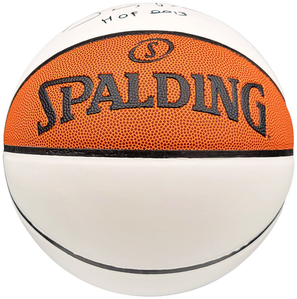 This is an Official Spalding White Panel Basketball that has been hand signed by Gary Payton. This item was inscribed "HOF 2013." This item has been certified authentic by Beckett Authentication (BAS) and comes with their tamper-proof QR Code sticker that can be verified on the Beckett-authentication.com.