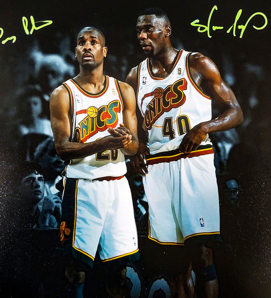 This is a 16x20 Photo that has been hand signed by Gary Payton & Shawn Kemp. This item has been certified authentic by Beckett Authentication (BAS) and comes with their tamper-proof QR Code sticker that can be verified on the Beckett-authentication.com.