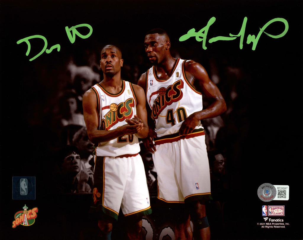 This is an 8x10 Photo that has been hand signed by Gary Payton & Shawn Kemp. This item has been certified authentic by Beckett Authentication (BAS) and comes with their tamper-proof QR Code sticker that can be verified on the Beckett-authentication.com.