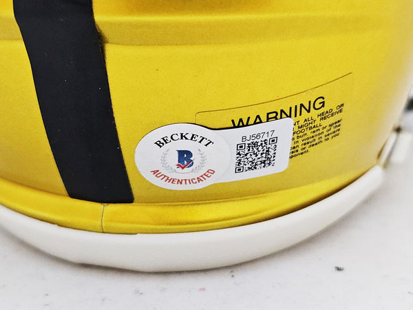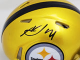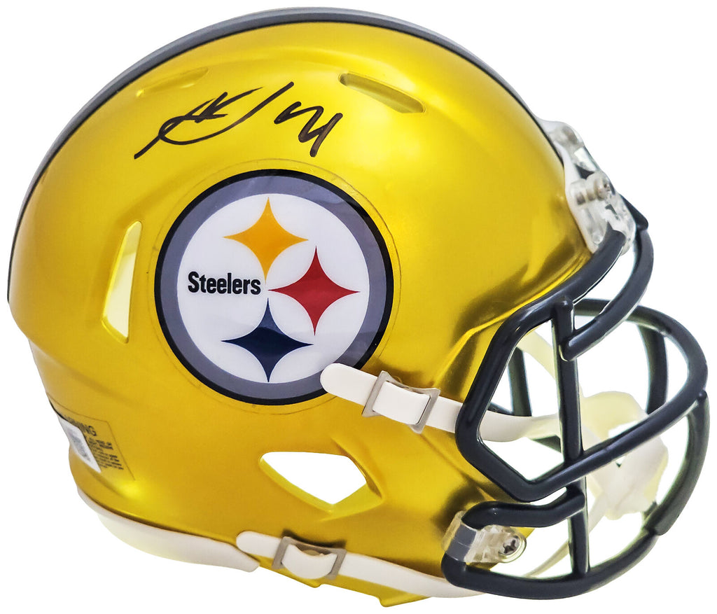 This is a Pittsburgh Steelers Flash Yellow Speed Mini Helmet that has been hand signed by George Pickens. The Flash helmets are delicate and may have some marks or scratches on them. This item has been certified authentic by Beckett Authentication (BAS) and comes with their tamper-proof QR Code sticker that can be verified on beckett-authentication.com.