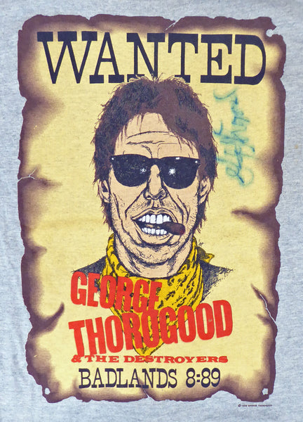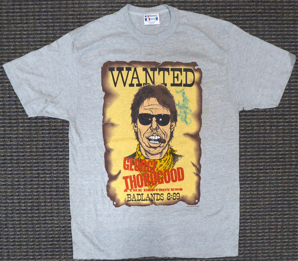 This is a T-Shirt that has been hand signed by George Thorogood. It has been certified authentic by Beckett Authentication (BAS) and comes with their sticker and matching certificate of authenticity.